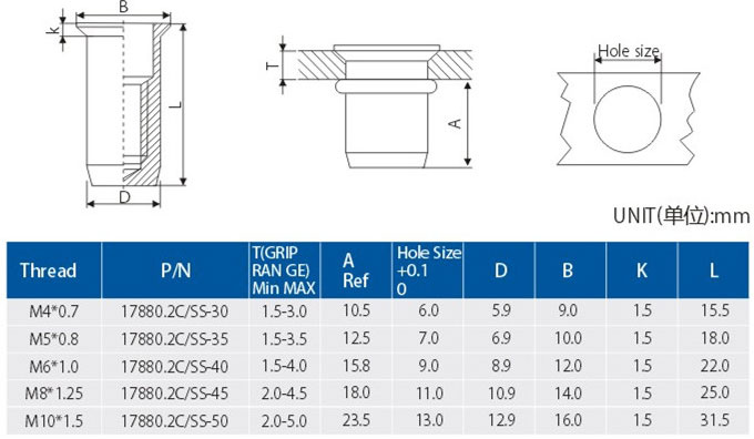 Countersunk Head Round Body Plain Close End/Stainless Steel